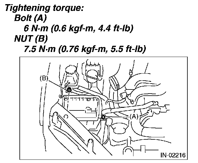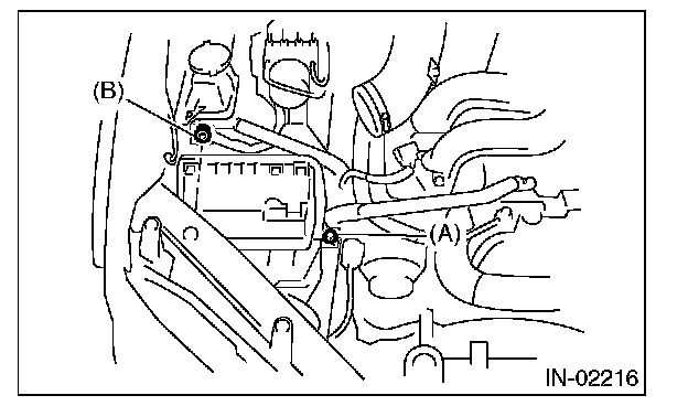 7. Remove the bolts (A) and nut (B) which secure the air cleaner case to body.