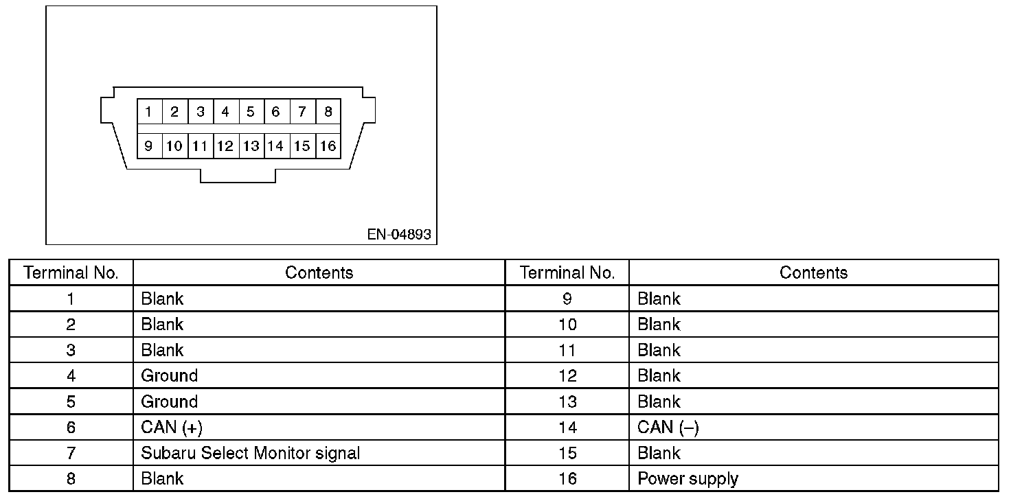 NOTE: This connector is used for Subaru Select Monitor.