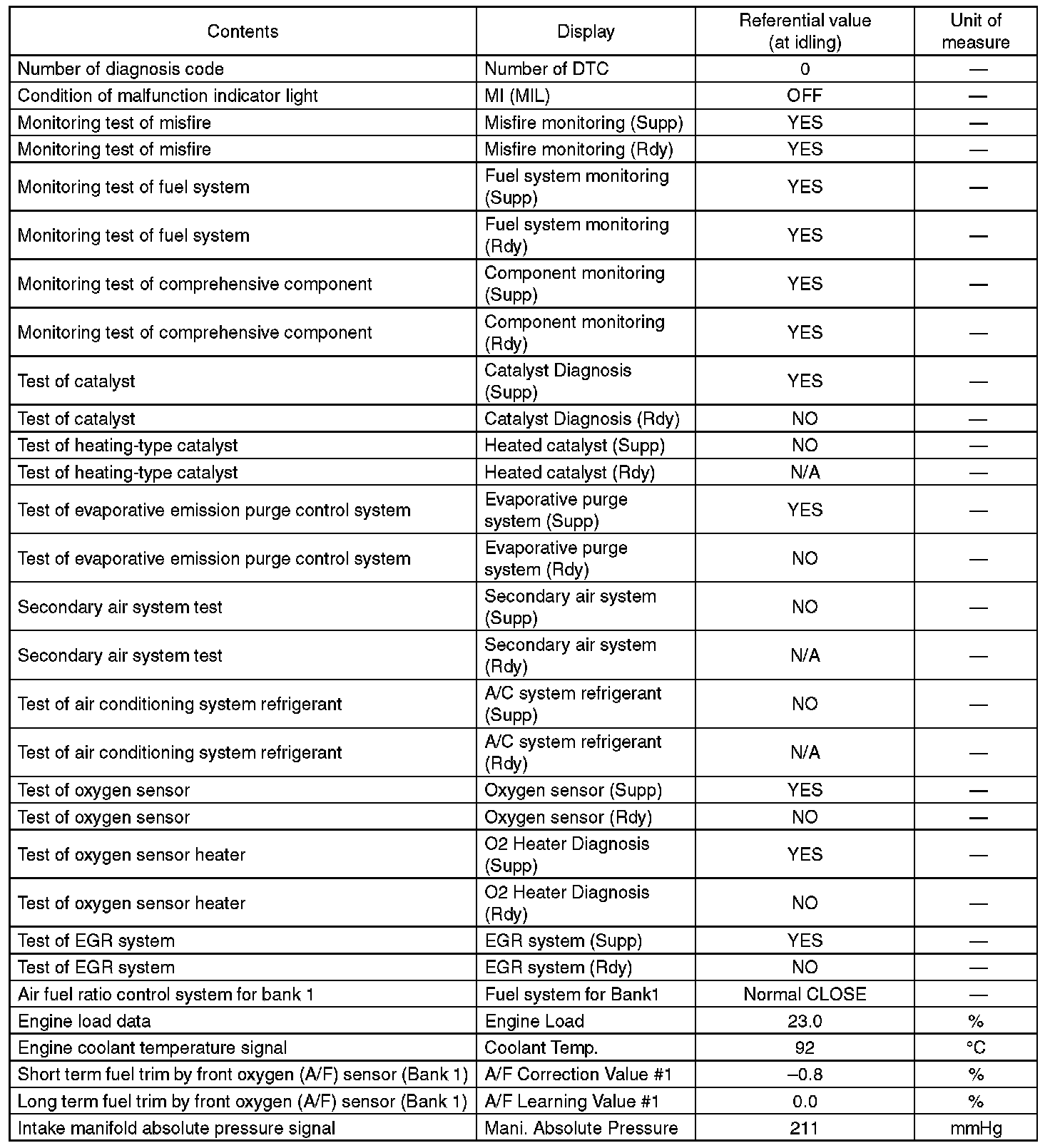 4. READ CURRENT DATA FOR ENGINE (NORMAL MODE)