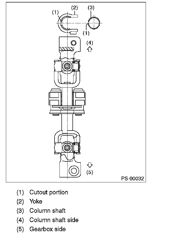 1) Align the cutout portion at serrated section of the column shaft and yoke, then install the universal joint into column shaft.