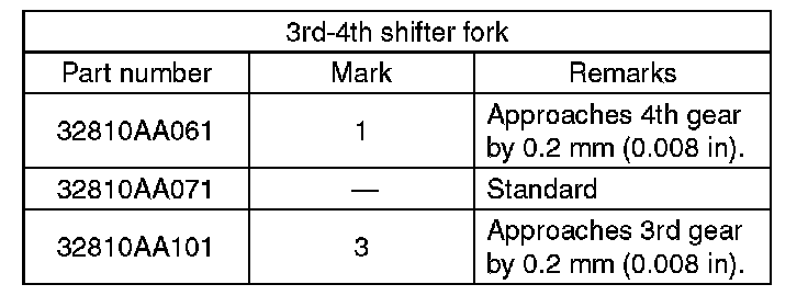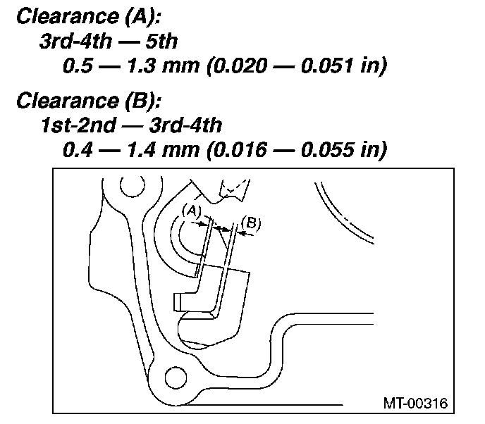 4) Inspect the clearance between the 3rd, 4th drive gear and the coupling sleeve. If any clearance is not within specifications, replace the shifter fork as required.