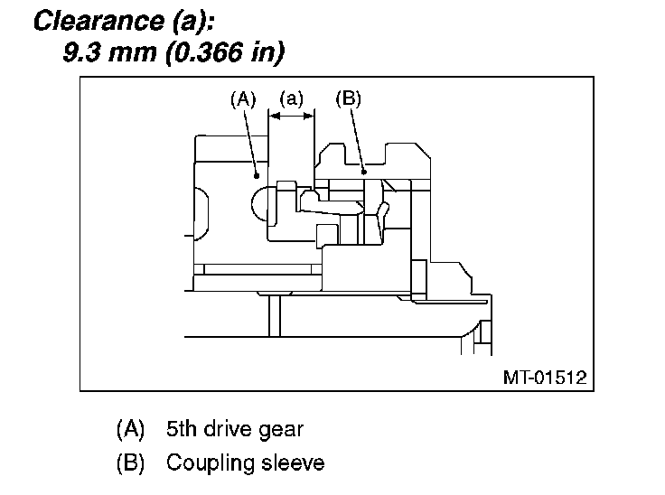 5) Inspect the clearance between 5th drive gear and coupling sleeve. If any clearance is not within specifications, replace the shifter fork as required.