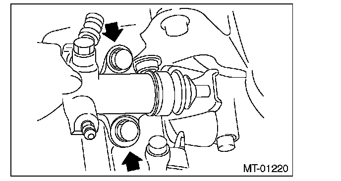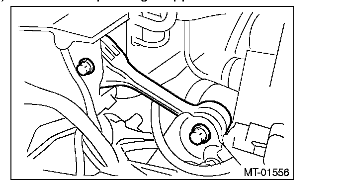 24) Remove the bolts and nuts which hold lower side of transmission to engine.