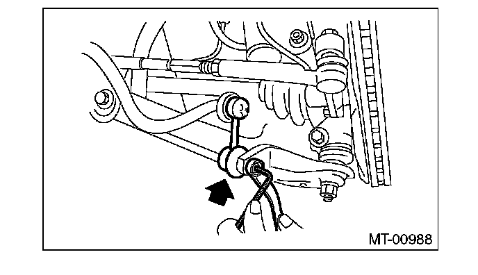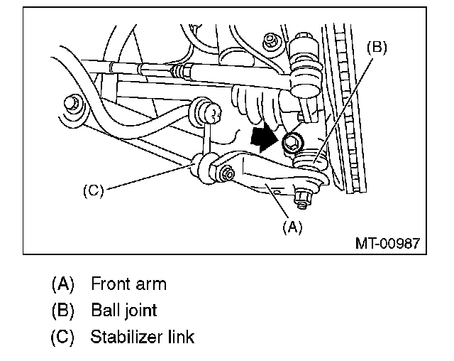 22) Remove the bolt securing the ball joint of the front arm to the housing, then separate the front arms and the housing.