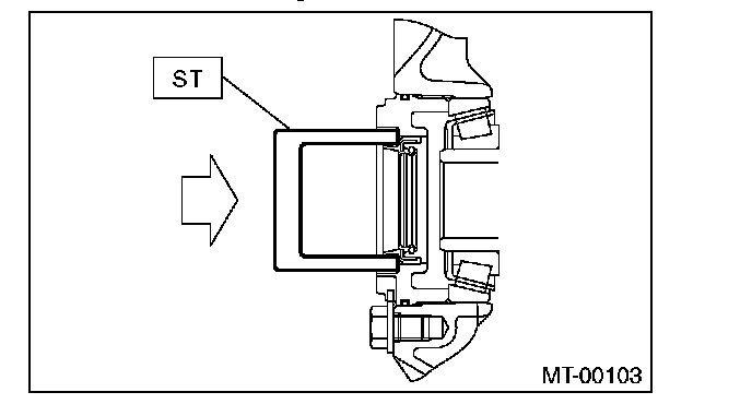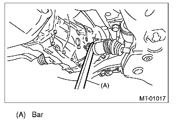 23) Using a crowbar, remove the left and right front drive shaft from the transmission.