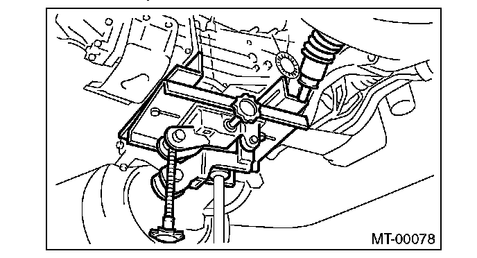 NOTE: Move the transmission jack towards the rear until the main shaft is withdrawn from the clutch disc.