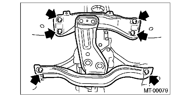 26) Remove the front crossmember and rear cross-member from the vehicle.