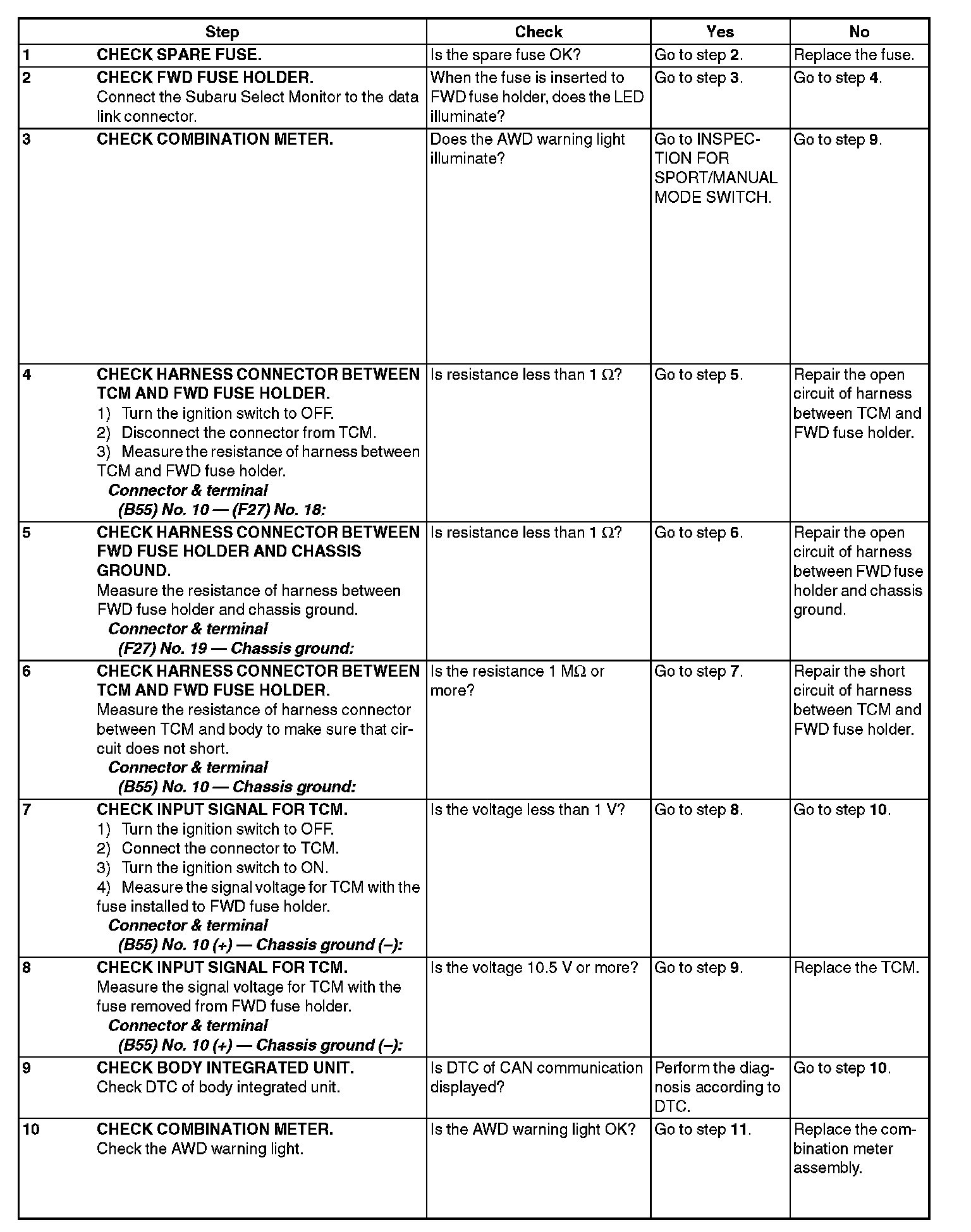 Diagnostic Procedure without Diagnostic Trouble Code (DTC)CHECK FWD SWITCH