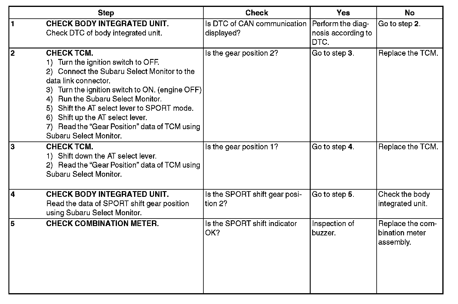 Output signal circuit of SPORT shift indicator is open or shorted.
