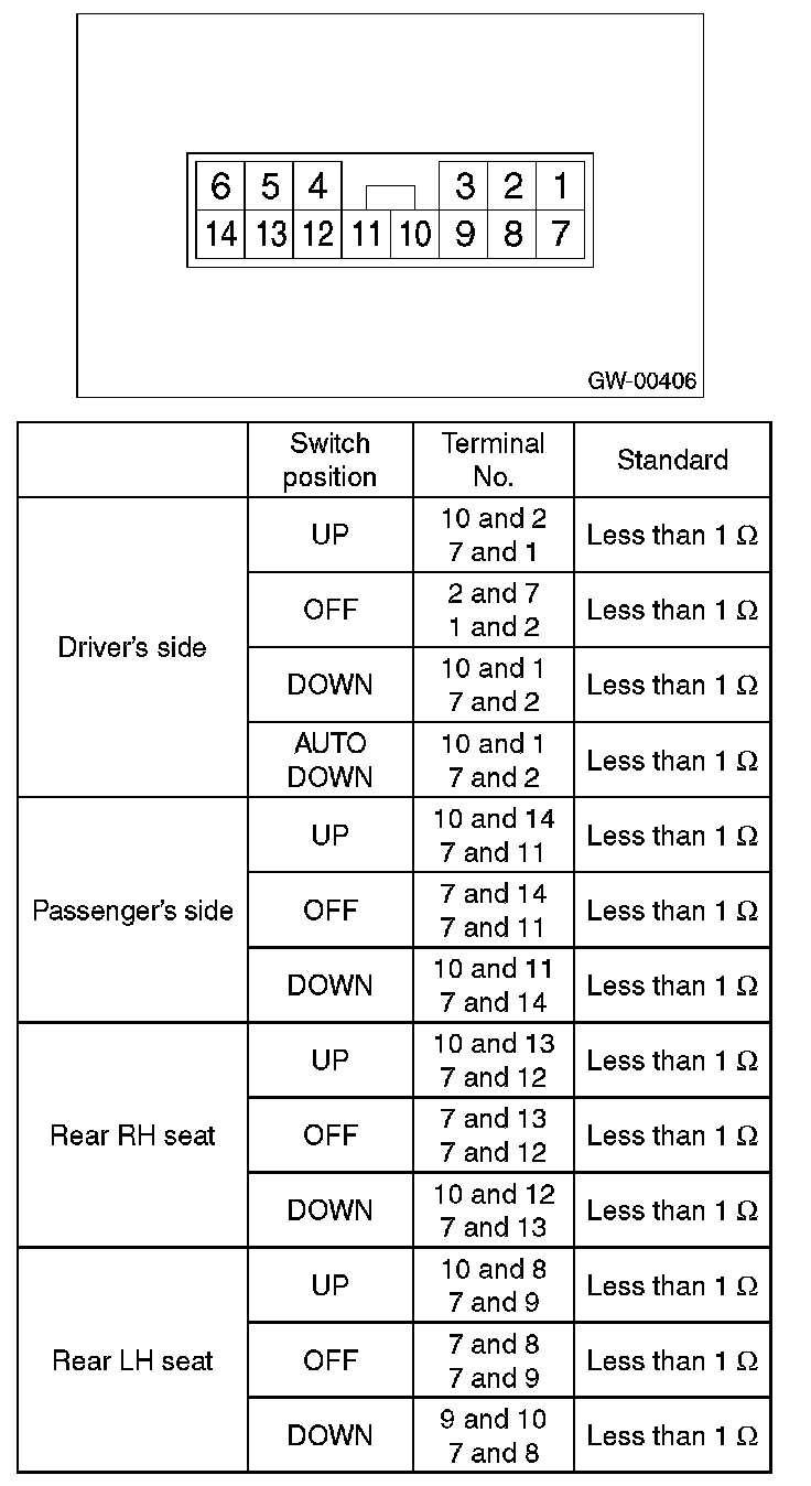 Power Window Switch: Testing and Inspection