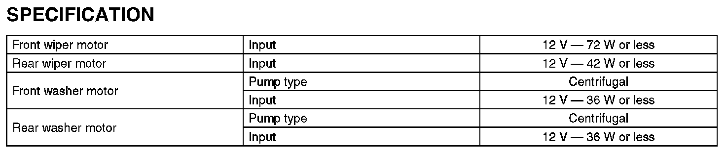 Wiper and Washer Systems: Specifications