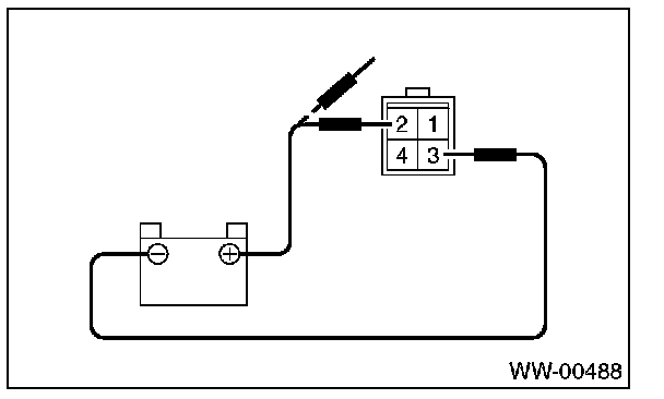 2. Connect the battery to the terminals to the connector, then run the wiper motor at low speed and disconnect the terminal in mid motion.
