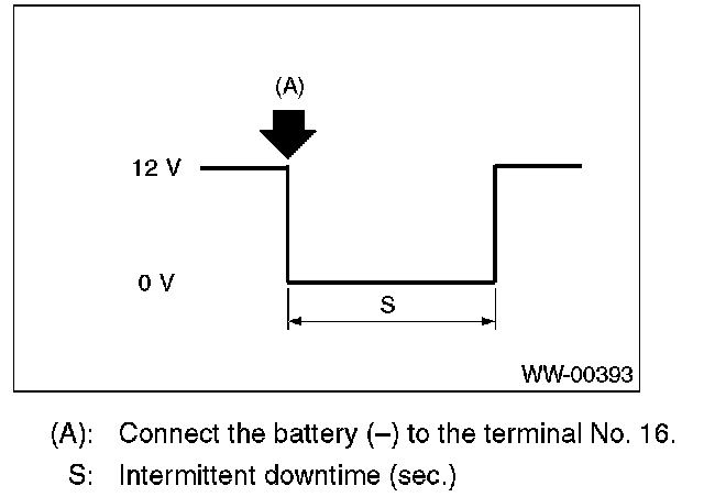 5. Connect the battery (-) to the terminal No.16, and check the voltage between terminal No.7 - No.2 when performing the intermittent operation.