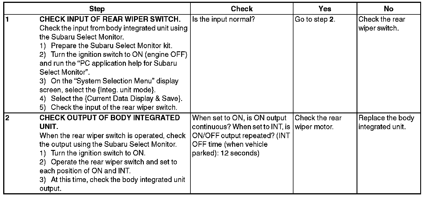 When the front wiper switch is operated, check the input signal using the Subaru Select Monitor.