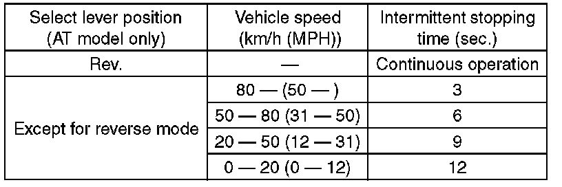 NOTE: Rear wiper intermittent time (AT model only)