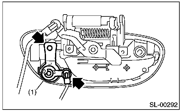 Remove the rod clamp and the bolt, then replace the key cylinder (1).