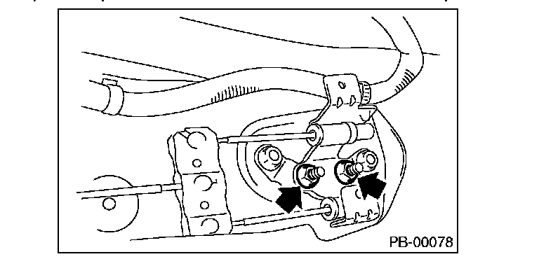 3) Remove the parking cable adjusting nut (selflocking nut).