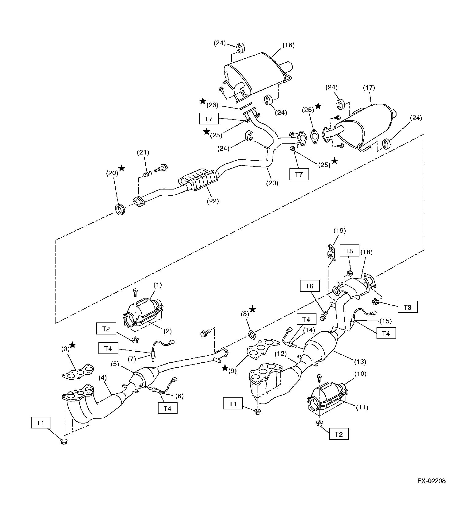 3) Separate the muffler from rear exhaust pipe.