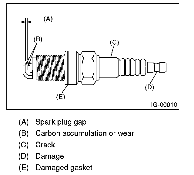 Check the electrodes and inner and outer ceramic insulator of plugs, noting the type of deposits and the degree of electrode erosion.