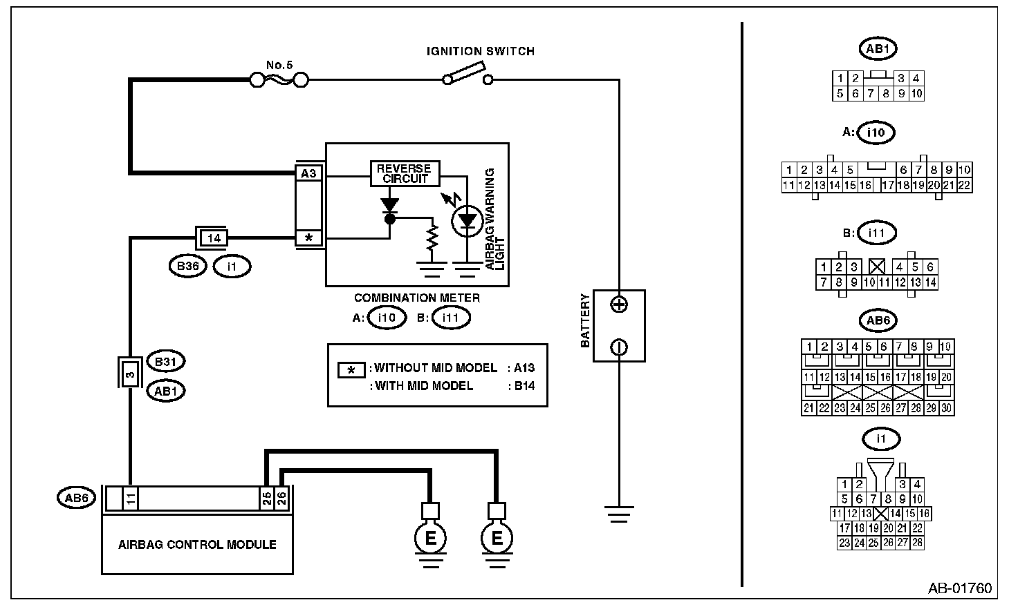 - Before diagnosing the airbag system, be sure to turn the ignition switch to OFF, disconnect the ground cable from the battery, and wait 20 seconds or more before starting to work.