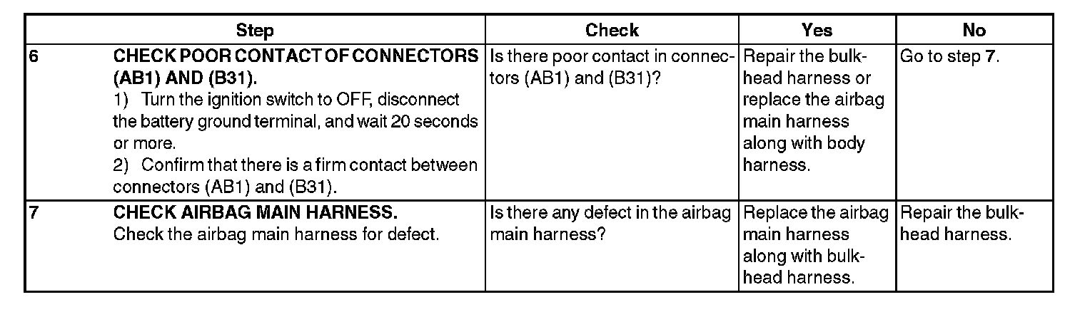 - When inspecting the airbag main harness, disconnect the airbag module connectors of the driver's and passenger's seats for safety.