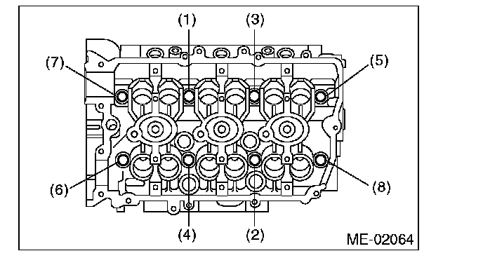 Tighten bolts (5) - (8) 44 N-m (4.5 kgf-m, 32.5 ft-lb)