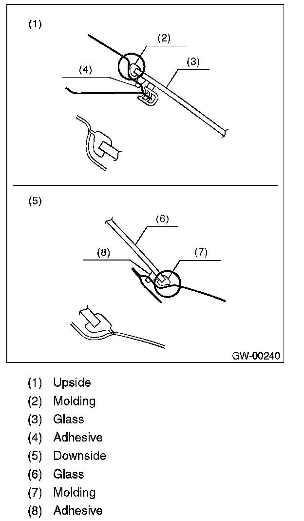 - For minimum drying time and vehicle standing time before driving after bonding, follow instructions or instruction manual from the adhesive manufacturer.