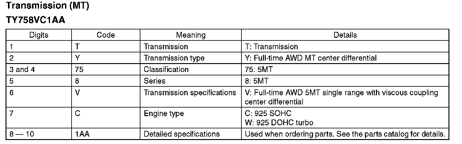 The engine and transmission type are as follows.