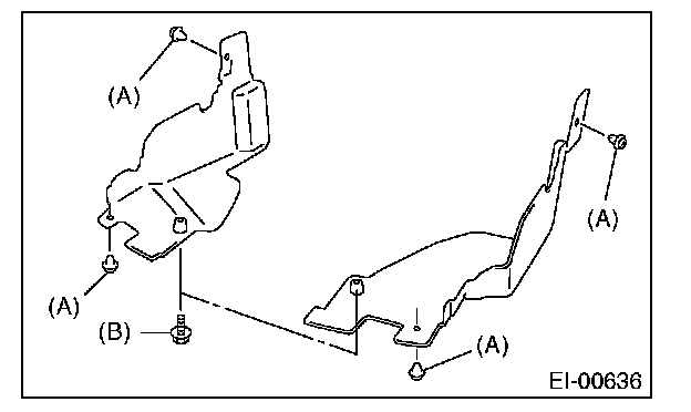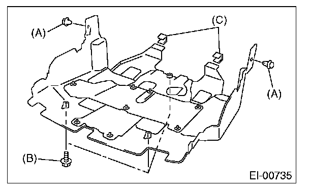 2. Remove clips (A) and (C), and bolts (B) in the front fender, then remove the front under cover.