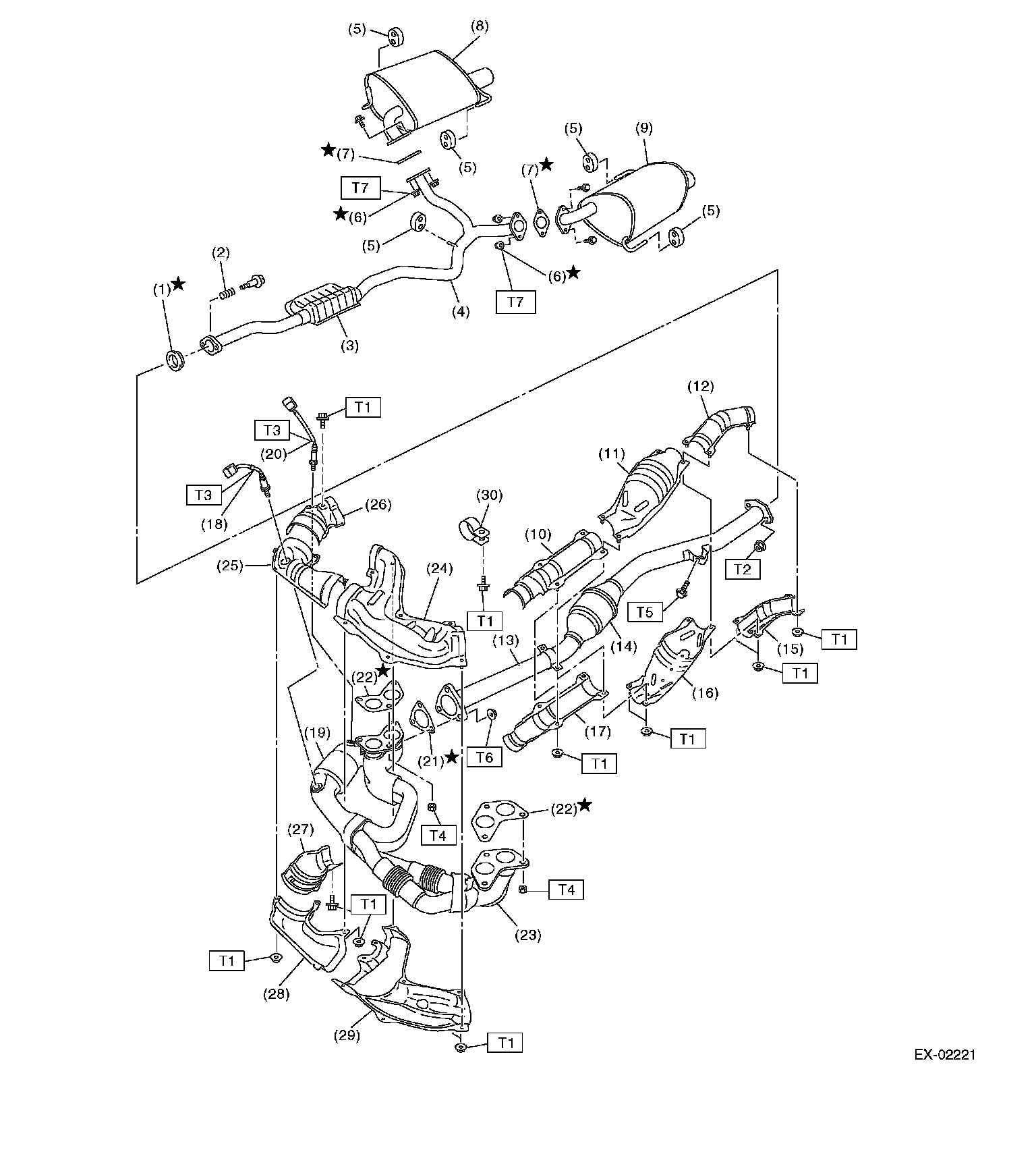 3) Separate the muffler from rear exhaust pipe.