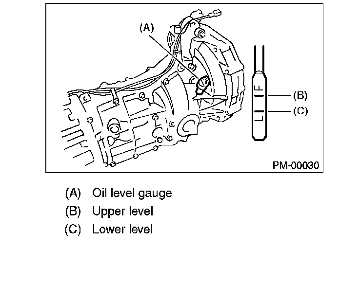 4) Reinsert the oil level gauge all the way. Be sure that the oil level gauge is correctly inserted in the proper direction.