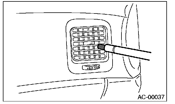11. Turn the ignition key to the ON position, and run the blower at high speed for approx. 1 minute. Stop the blower and check the ventilation grille on the instrument panel. While moving the tester closer to the grille, run the blower for 1 or 2 seconds, then stop it. Check the grille at that position for at least 10 seconds.