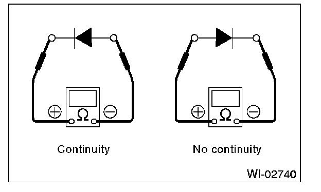 2. Use an ohmmeter to check for diode continuity. When contacting the negative lead to the diode positive side and the positive lead to the negative side, there should be continuity. When contacting the two leads in reverse, there should be no continuity.