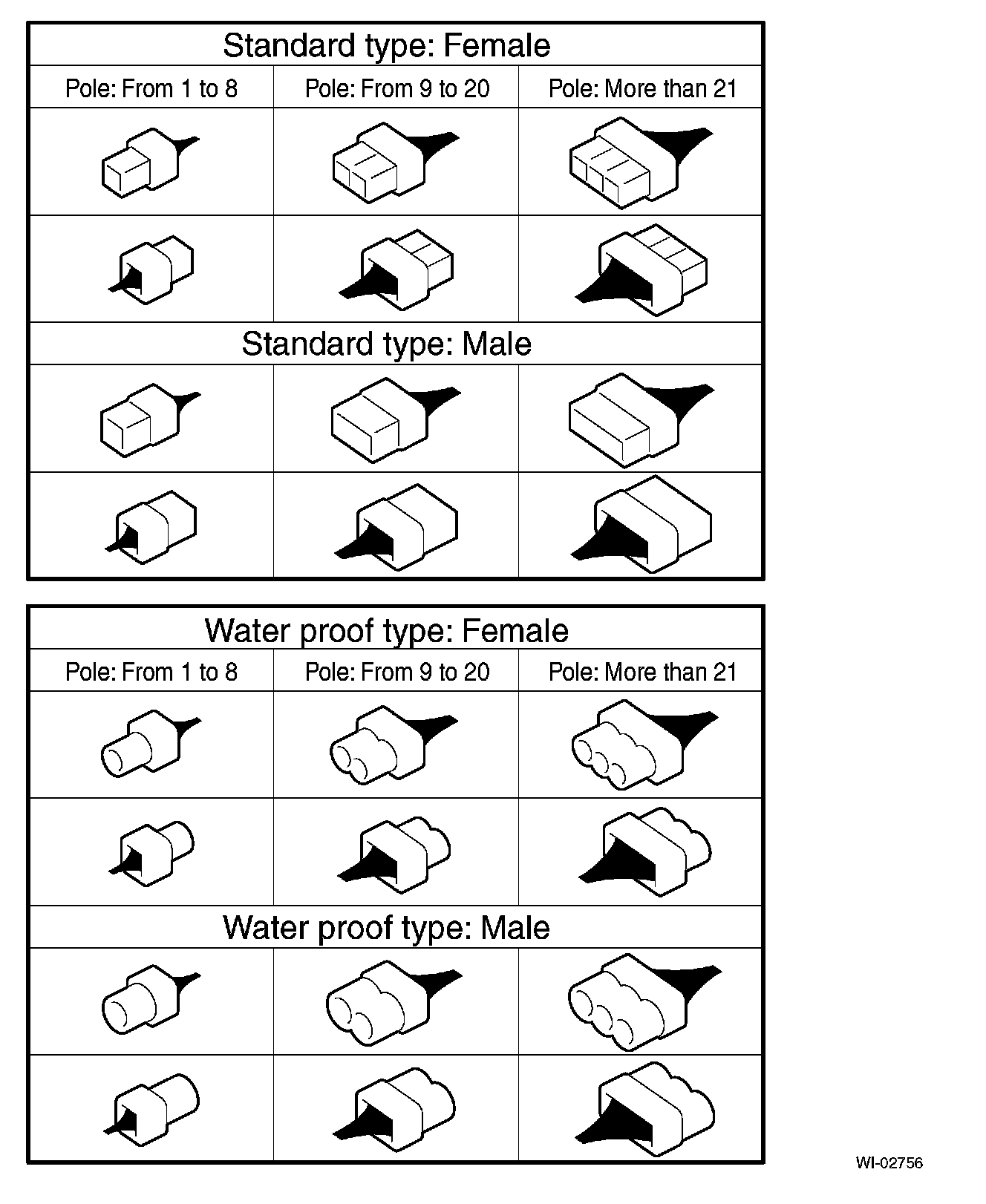 A number of connector symbols are used in each wiring diagram to easily identify the wiring harness connectors.
