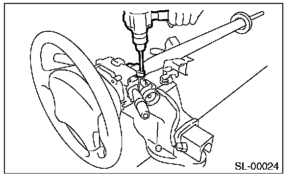 3. Secure the steering column in a vise. Remove the bolt with a drill.