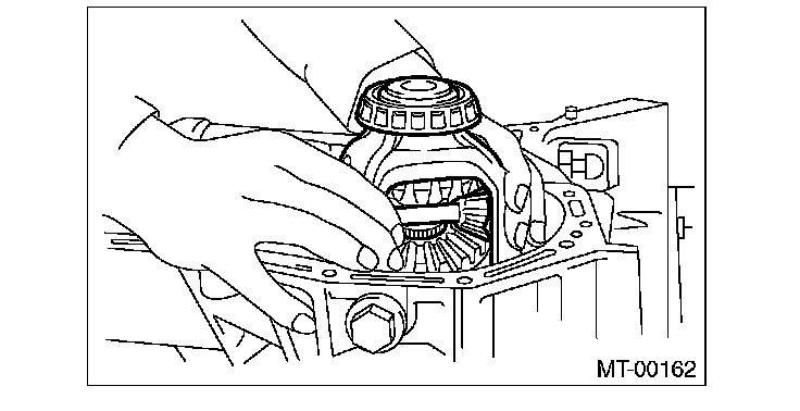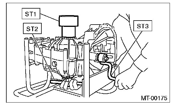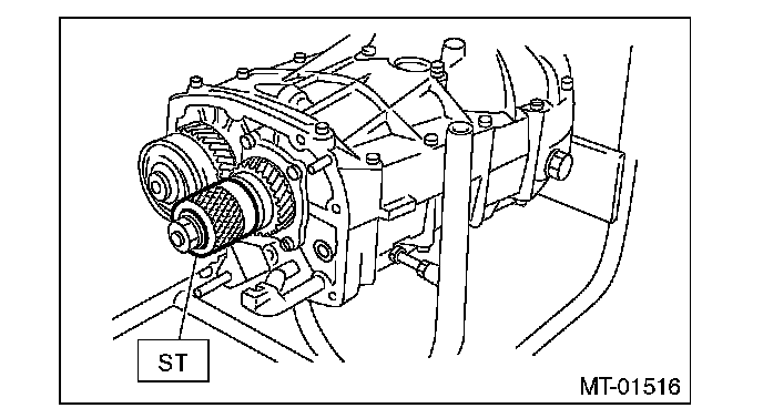 9) Place the transmission with the left side of case facing downward, and put ST1 on bearing cup.