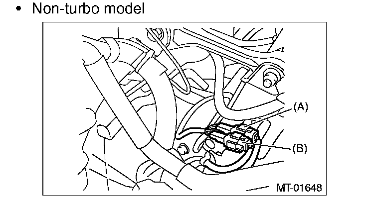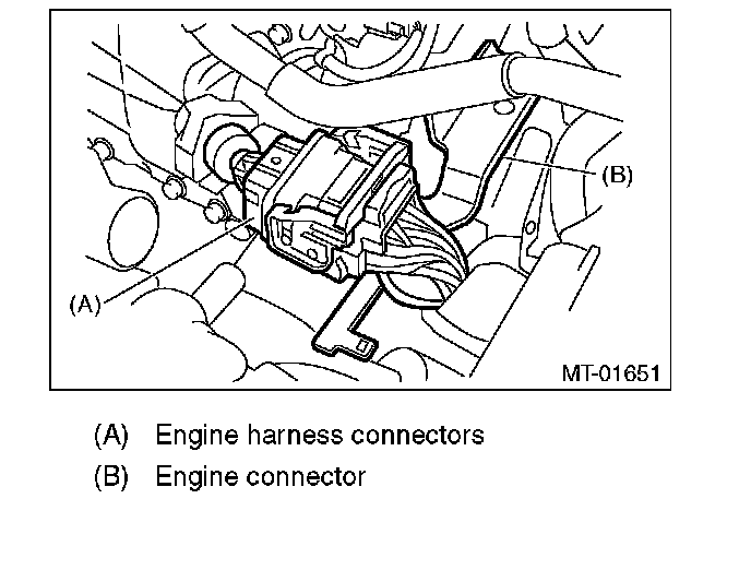 27) Install the engine hanger rear, and then connect the engine harness connector. (Non-turbo model)
