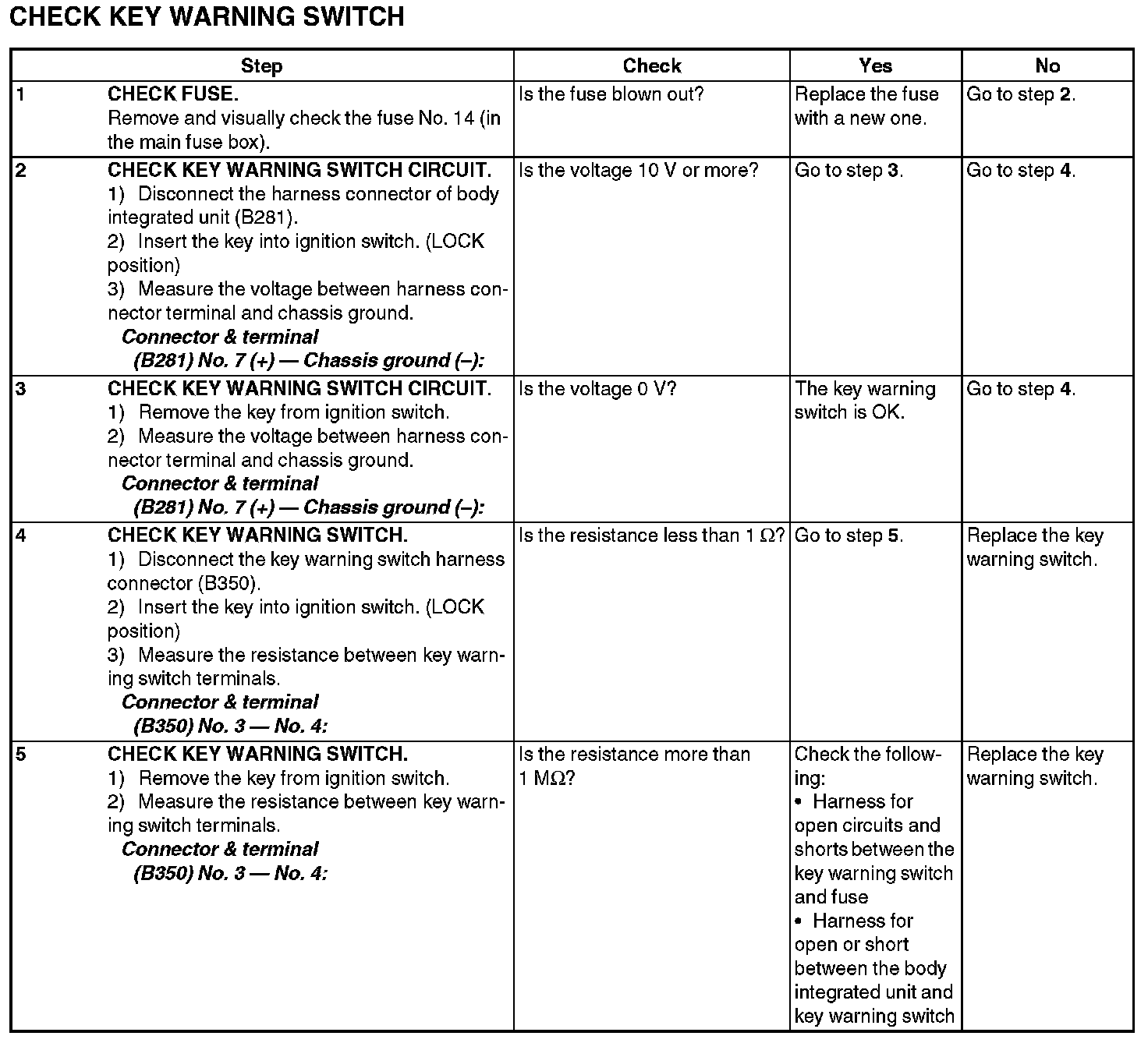 6. CHECK KEY WARNING SWITCH