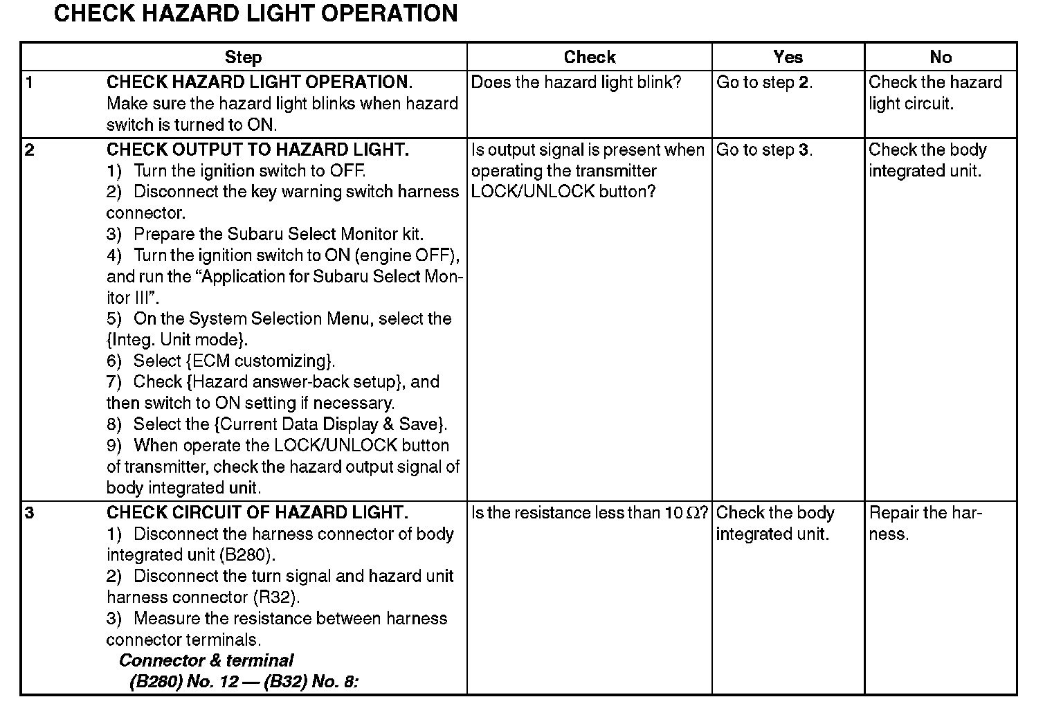 8. CHECK HAZARD LIGHT OPERATION
