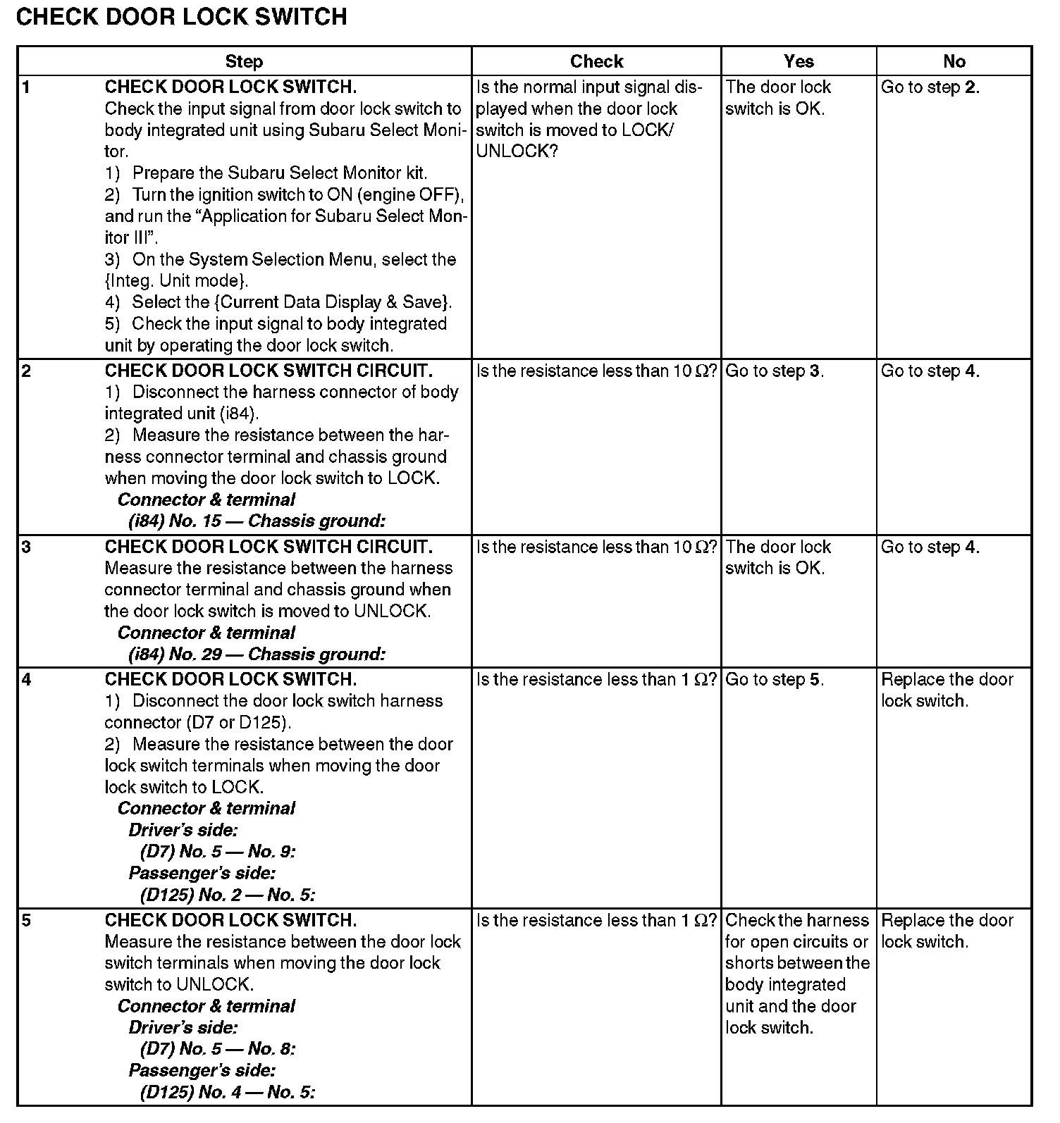 10. CHECK DOOR LOCK SWITCH