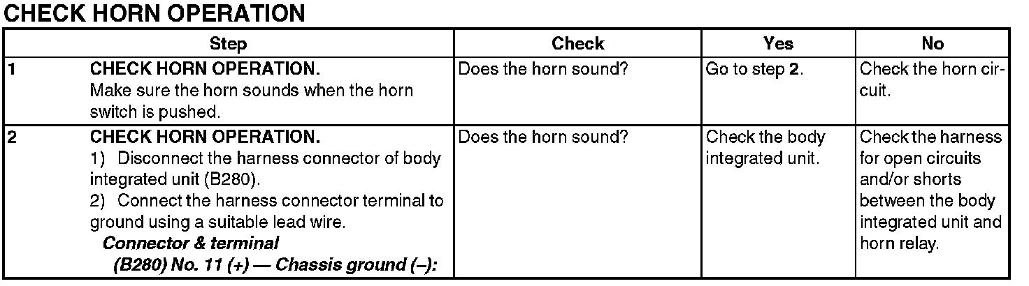 12. CHECK HORN OPERATION