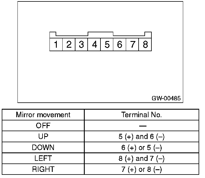 Check that the rearview mirror moves properly when the battery voltage is applied to terminals.