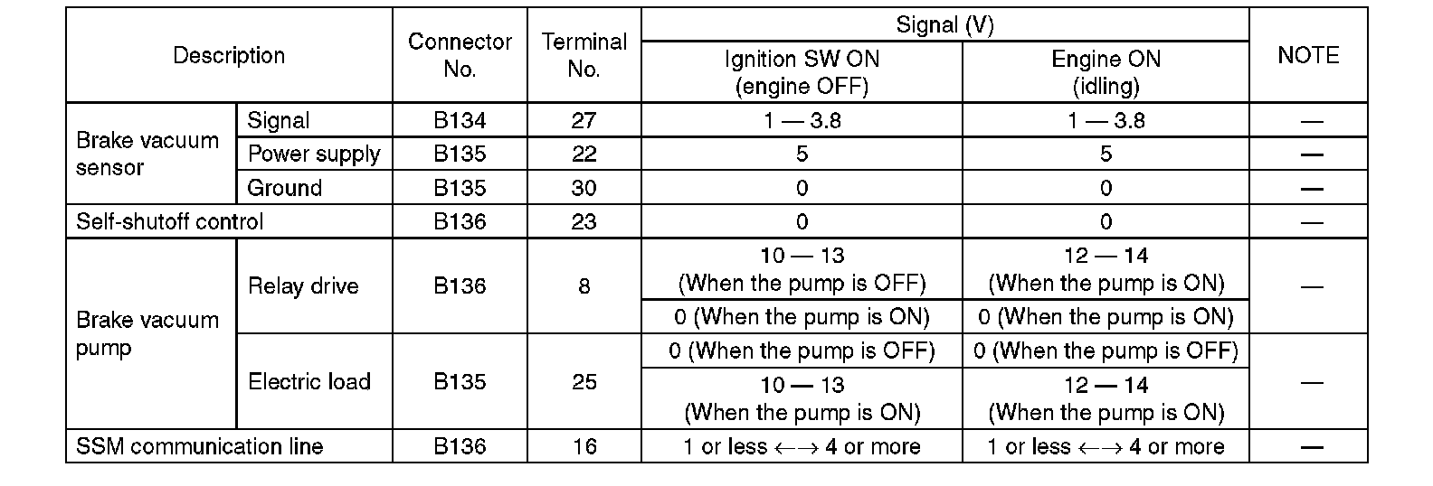 Pinout Values and Diagnostic Parameters