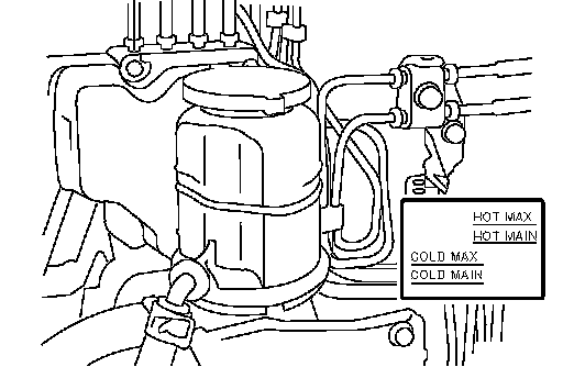 2. Check at power steering fluid temperature 80°C (176°F); read the fluid level on the HOT side.