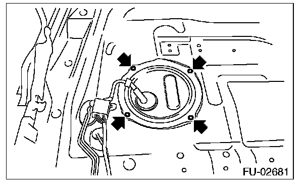 7. Remove the nuts which install fuel pump assembly onto fuel tank.