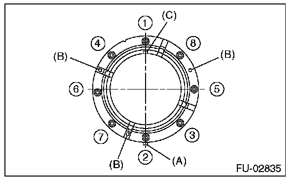 - Tighten the nuts to the specified torque in the order as shown in the figure.