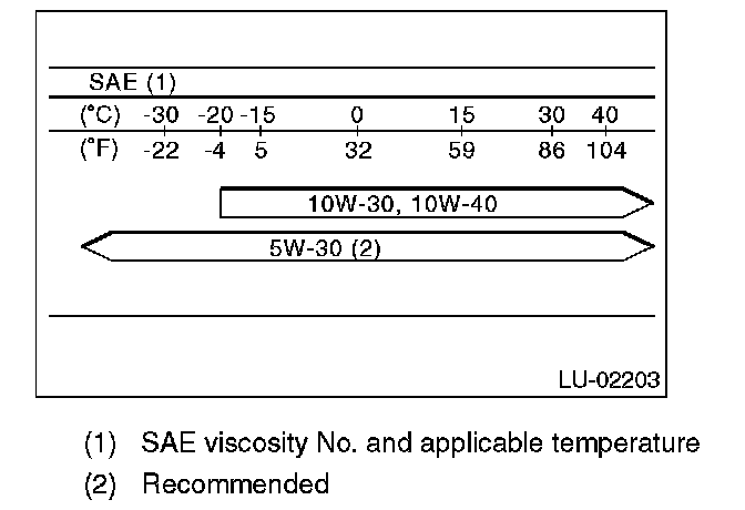NOTE: If the vehicle is used in areas with very high temperatures or for other heavy duty applications, the following viscosity oils must be used: API standard: SM or SL