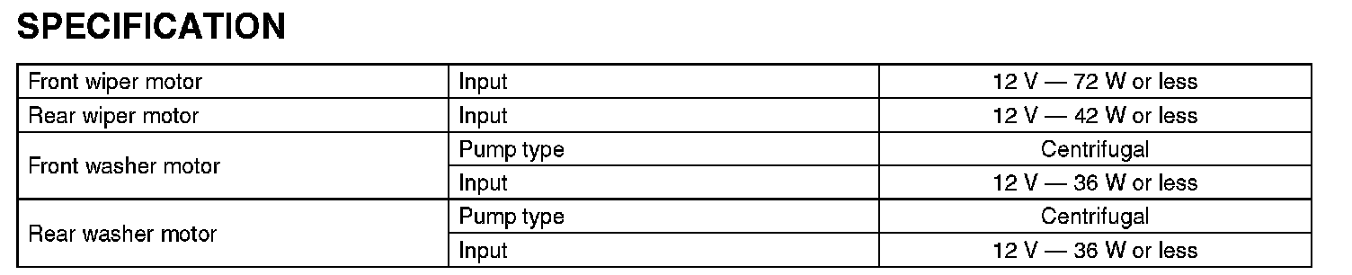 Wiper and Washer Systems: Specifications