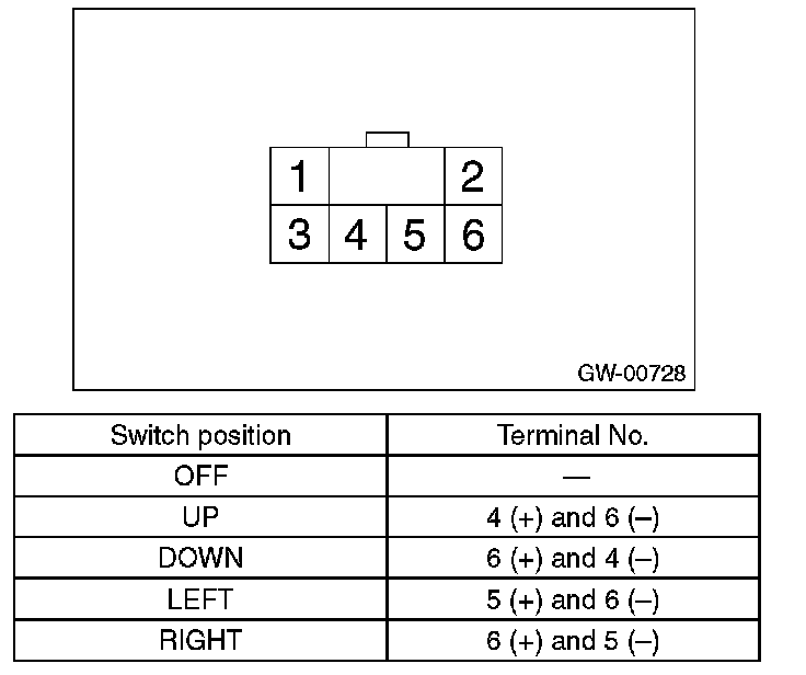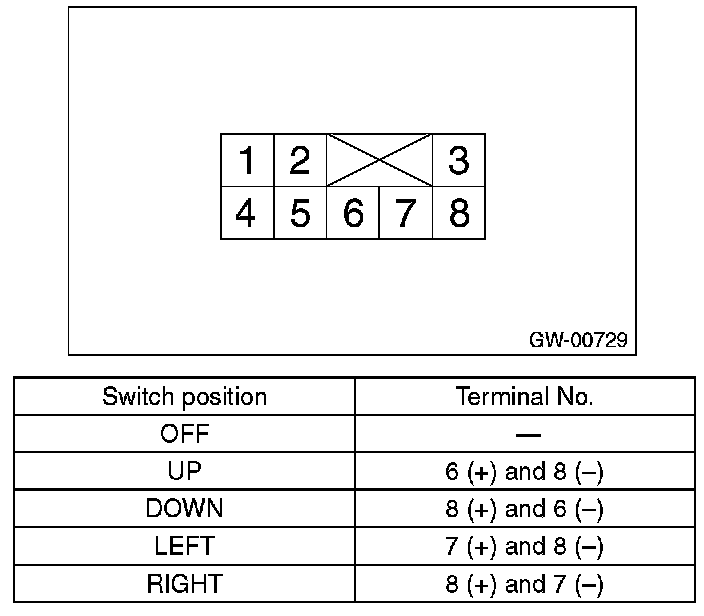 Check to ensure that the outer mirror moves properly when the battery voltage is applied to terminals.