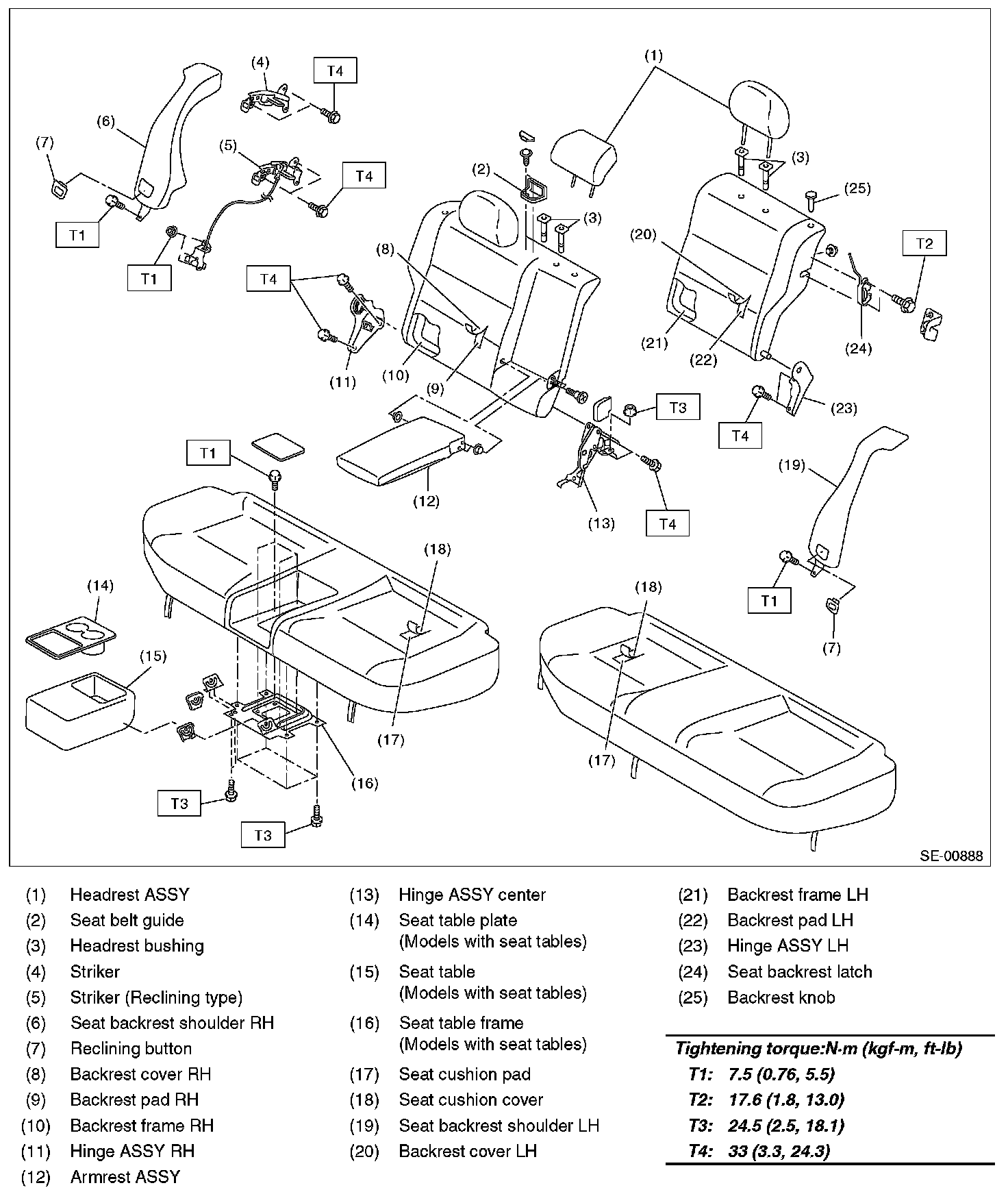 10. Remove the bolts on the backside of the seat cushion, and remove the seat table assembly.